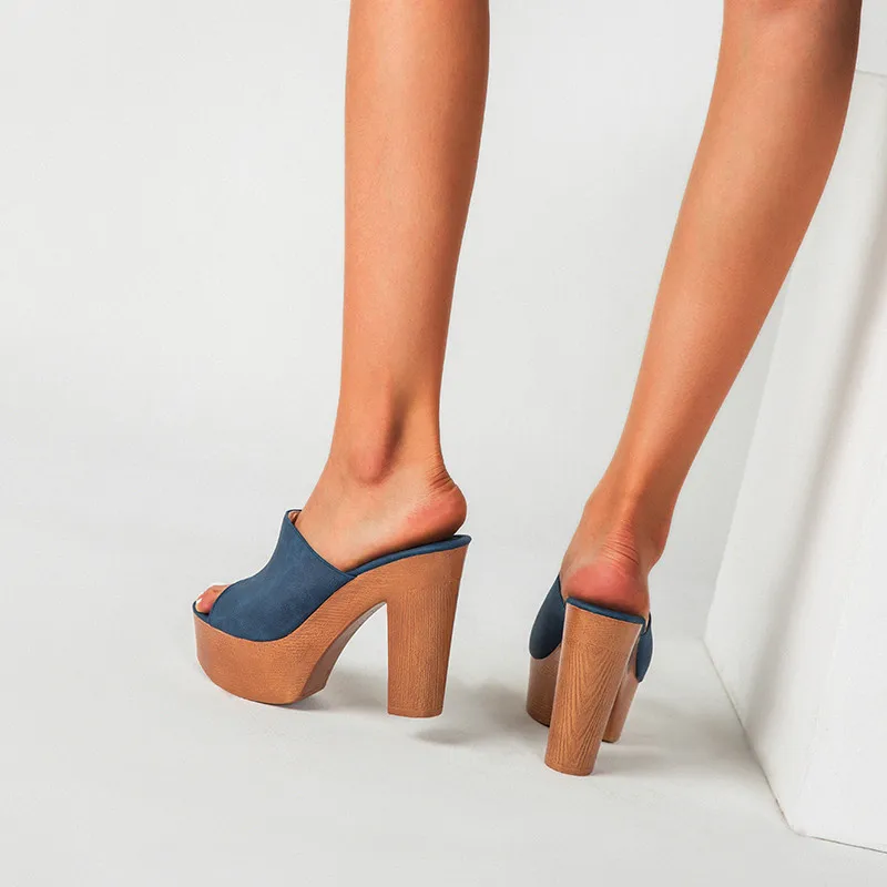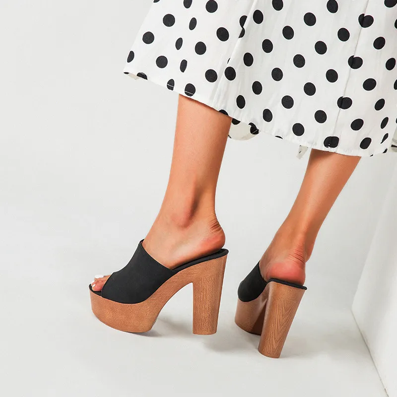 Eilyken Roma Style Platform Slippers Women Casual Peep Toe Wooden Thick High Heels Ladies Shoes Fashion Sandals Big Size