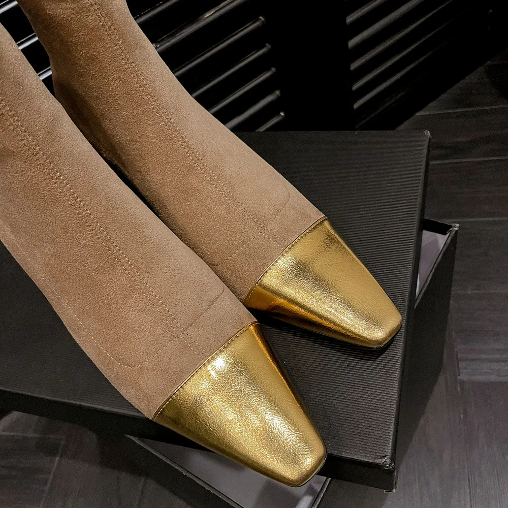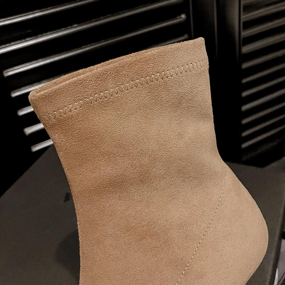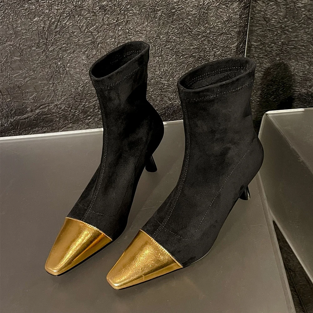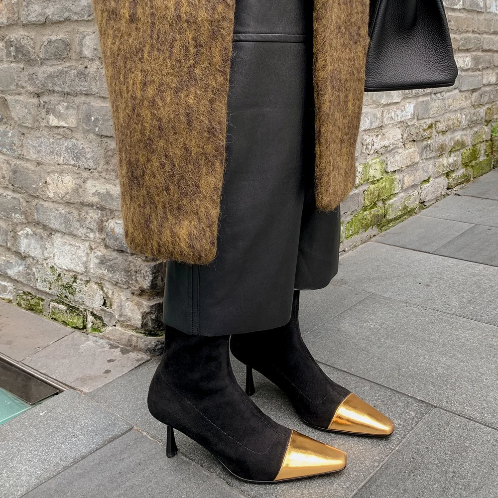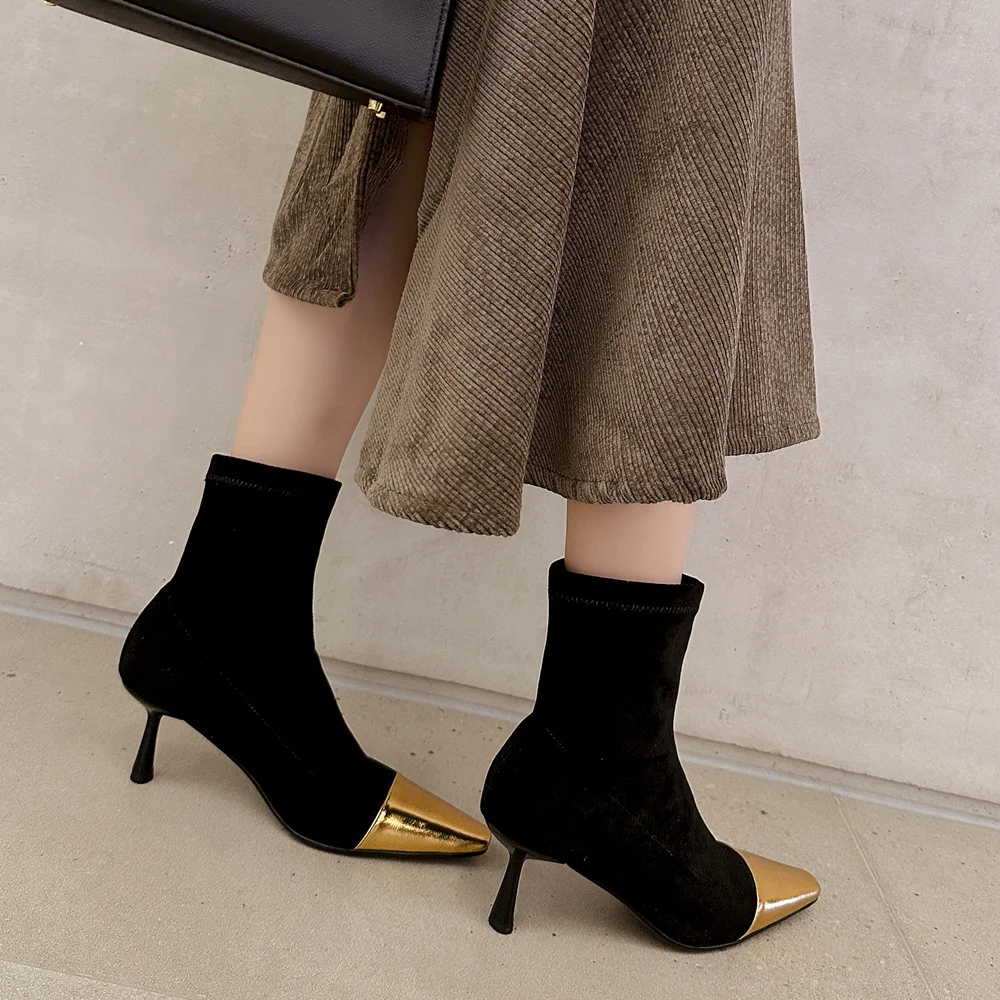 Mature Splicing Genuine Leather Women Ankle Boots Mixed Colors Office Ladies Thin High Heels Shoes Woman Autumn Winter