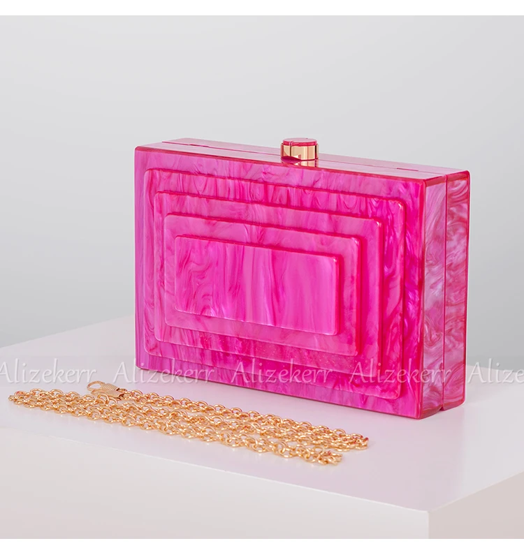 Multi-layer Acrylic Box Evening Clutch Bags Women Elegant Rose Red Purses And Handbags Ladies Chain Crossbody Bags Wedding Party